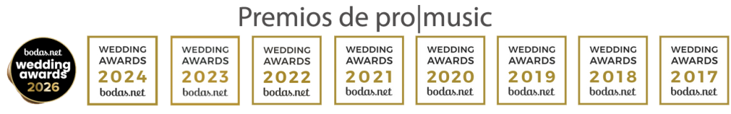 Promusic Eventos ha sido reconocido con los Wedding Awards de Bodas.net de forma ininterrumpida desde 2017 hasta 2026, un premio otorgado a los profesionales mejor valorados por las parejas en la categoría de DJ y música para bodas.